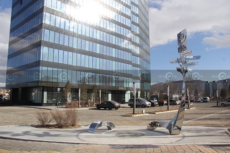 Konstmaterialet begärdes av rostfritt stål och spegelpolering. Det är en stadsskulptur. Människor kan sitta på det och läsa riktmärket och avståndet från Ulaanbaatar till några populära städer.